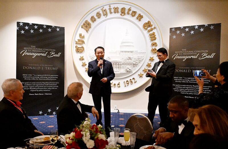 ▲유정복 인천광역시장 20일(현지시간) 미국 워싱턴DC에서 열린 트럼프 대통령 취임 기념행사(Inaugural Ball)에 참석해 인사말을 하고 있다.