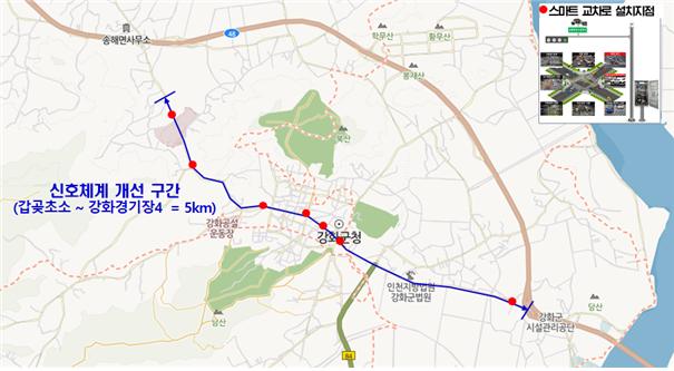 특히 인천 강화대로의 심각한 교통정체를 고려해 강화군청 주변을 중심으로 스마트교차로를 설치해 실시간 교통량분석과 최적 교통신호시간을 인공지능(AI) 기반으로 도출해 시범 적용할 예정이다.