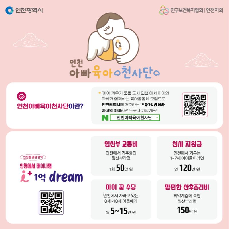 ‘인천아빠 육아천사단’에 대한 자세한 내용과 혜택은 공식 커뮤니티(https://cafe.naver.com/infatherangel)에서 확인할 수 있다.