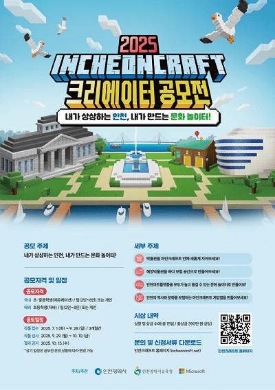 인천시 관계자는“인천크래프트는 단순한 체험형 게임을 넘어, 청소년들이 도시공간을 상상하고 구현할 수 있는 공공형 콘텐츠”라며 “이번 공모전을 통해 제안되는 창의적인 아이디어들이 인천의 도시브랜드 가치를 확장하는 데 기여하길 기대한다”라고 말했다.