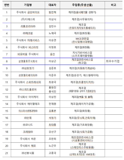 선정된 기업들은 제조업, 지식기반 서비스업, 마이스(MICE) 산업 등 다양한 업종에 분포해 있으며, 평균 근로자 증가율은 14.7%에 달한다. 기업의 경영 건전성과 정규직 비율, 퇴사율, 복지제도, 지역인재 및 취약계층 고용 실적 등도 평가 항목에 포함됐다.