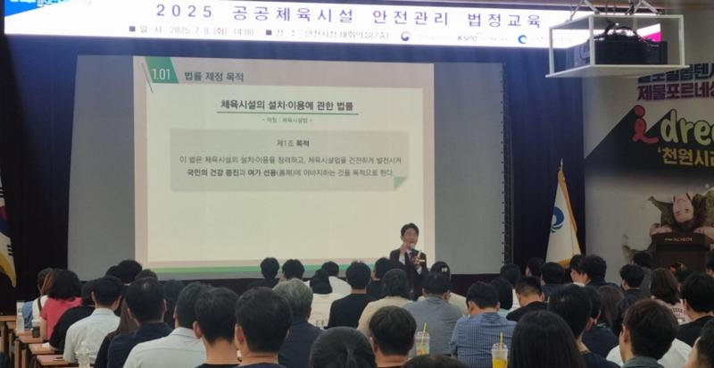 이번 교육은 「체육시설의 설치·이용에 관한 법률」에 따른 법정 의무교육으로 체육시설의 안전사고 예방과 현장 점검 역량 강화를 목적으로 실시됐다.