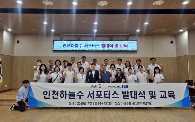 인천광역시(시장 유정복)는 상수도 행정의 신뢰 회복과 수돗물 품질관리의 객관성 확보를 위해 구성된 ‘2025년 인천하늘수 서포터스’가 9일 발대식을 시작으로 본격적인 활동을 시작했다고 밝혔다.