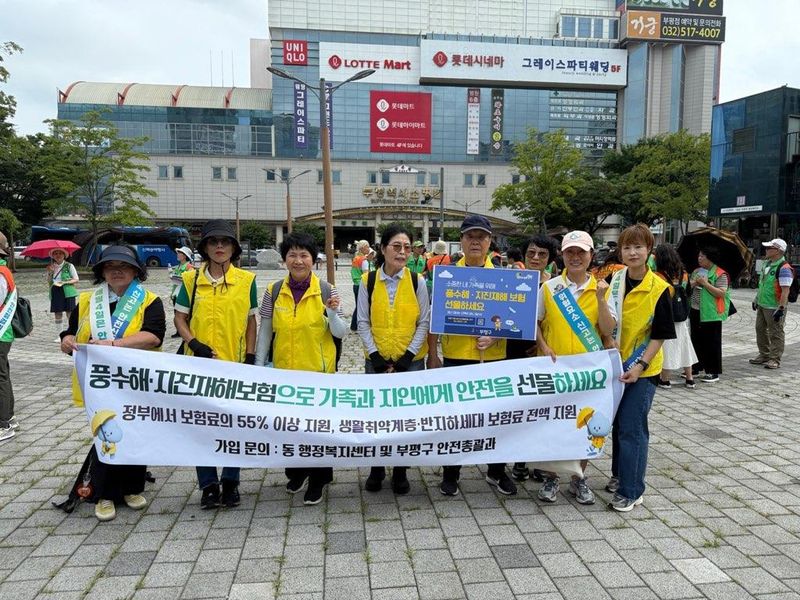 부평구(구청장 차준택)는 지난 4일 재난 취약계층을 위한 ‘풍수해·지진재해보험 선물하기 홍보 캠페인’을 진행했다.