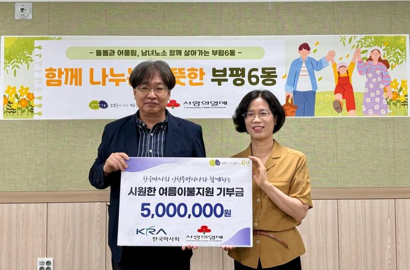 한윤숙 부평6동장은 “지속적인 기부를 실천해 주시는 한국마사회 인천부평지사에 감사하다”며 “소중한 성금이 지역사회에 의미 있게 사용될 수 있도록 하겠다”고 전했다.
