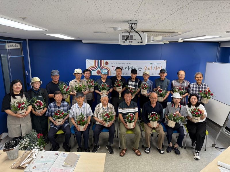 남성 어르신이 대상인 이번 프로그램은 도시농부꽃마당이 한국농수산식품유통공사(aT)의 후원을 받아 진행하는 ‘2025 꽃 생활화 체험 교육사업’의 일환이다.