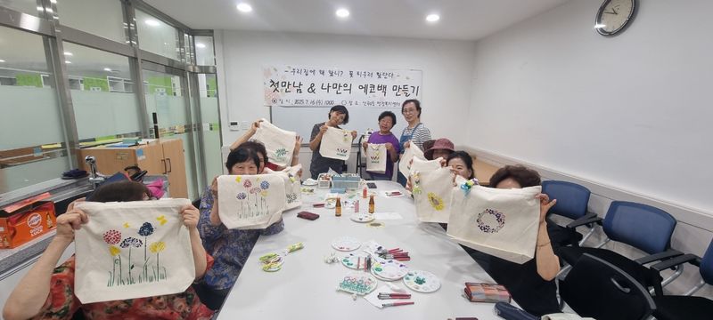 이날 열린 첫 시간에는 ‘나만의 에코백 만들기’가 진행됐다. 대상자들은 의류 채색용 펜(패브릭 마카)을 이용하여 직접 색칠하는 친환경 가방(에코백)을 만들며 성취감을 느껴보는 시간을 가졌다.