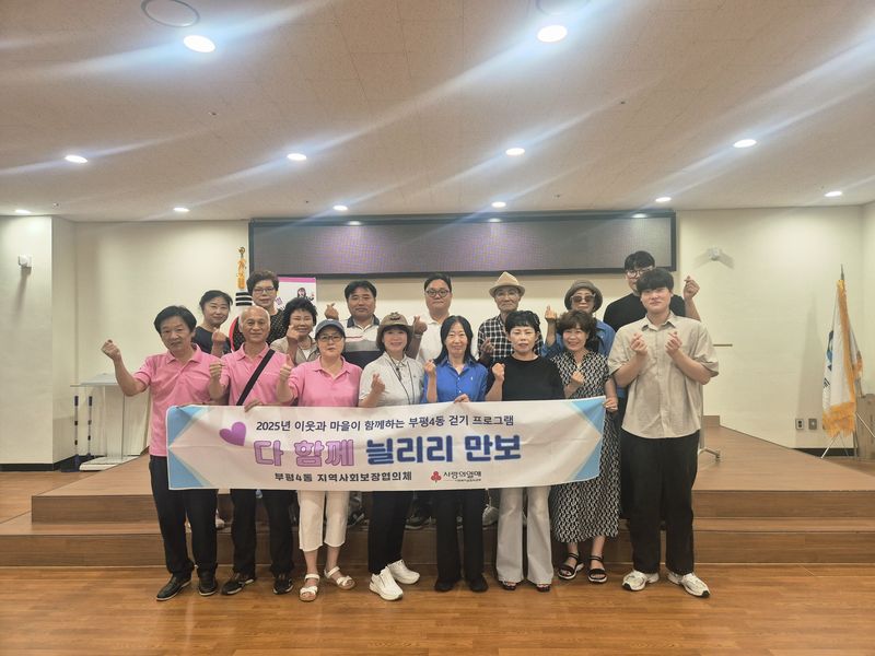 부평구(구청장 차준택) 부평4동 지역사회보장협의체는 중장년 1인가구 8명을 대상으로 진행한 걷기 프로그램 ‘다 함께 늴리리 만보’를 마무리했다고 17일 밝혔다.