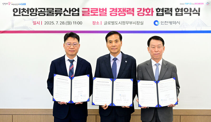 인천광역시(시장 유정복)는 7월 28일 오전 11시 글로벌도시정무부시장실에서 인천지역 기반 화물 전용 항공사인 에어인천㈜과 글로벌 항공물류 산업 경쟁력 강화를 위한 업무협약(MOU)을 체결했다고 밝혔다.