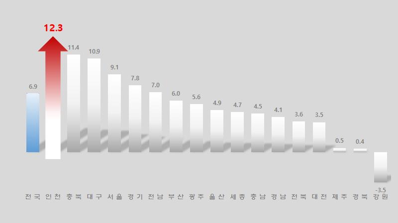 통계청이 발표한 2025년 6월 인구동향에 따르면, 인천시는 1월부터 6월까지 출생아 수가 전년 동기 대비 12.1% 증가해 전국 17개 시·도 가운데 가장 높은 증가율을 보였다. 전국 평균 증가율(7.4%)의 약 1.6배에 달하는 수치로, 수도권 내 다른 대도시와 비교해도 격차가 뚜렷하다.