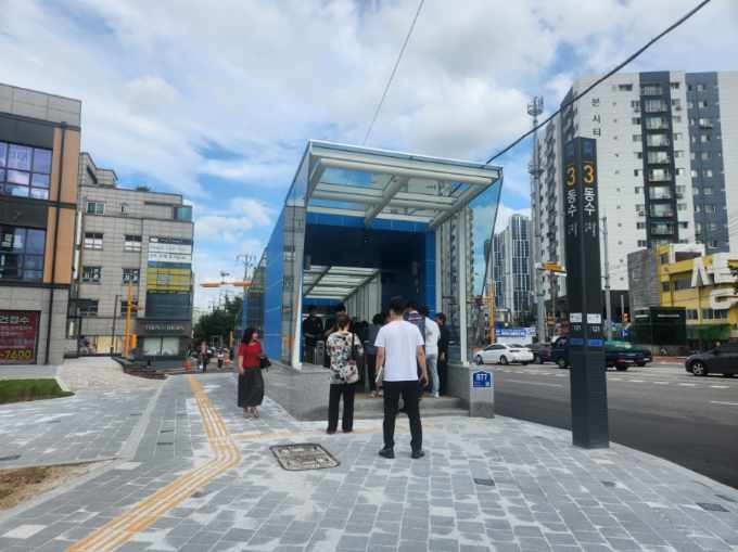 새롭게 정비된 동수역 3번 출입구에는 폭 3.7m, 연장 53.8m, 높이 14.3m 규모의 에스컬레이터(상·하행 각 1대)가 설치되었다. 또한 부영로 방면 연결통로(폭 5.8m, 연장 13.5m, 높이 4.8m)가 조성되어 주민들의 철도 접근성과 이용 편의성이 크게 향상될 것으로 기대된다.