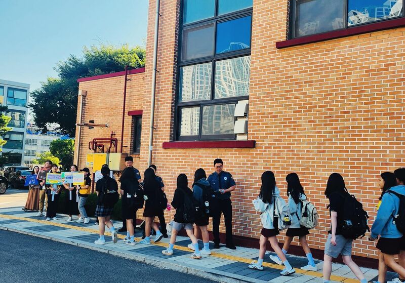 지난 10일 오전, 인천 부평구 부평여자중학교 앞 등굣길. 학생들의 발걸음이 분주한 시간대, 학교 앞에는 학부모와 교직원, 경찰관 등이 함께 모여 형형색색의 피켓을 들고 학생들을 맞이했다.