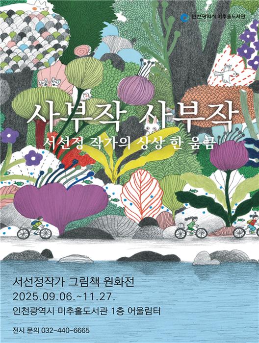 인천광역시(시장 유정복) 미추홀도서관은 오는 11월 27일까지 ‘사부작 사부작, 서선정 작가의 상상 한 움큼’ 전시를 열고 독자들의 사랑을 받은 그림책 원화와 미공개 드로잉 작품을 선보인다고 밝혔다.