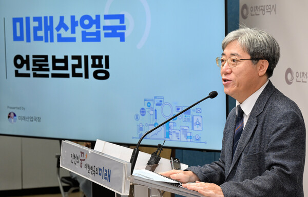 이남주 미래산업국장이 18일 시청 브리핑룸에서 미래산업국 소관 현안과 관련해 기자브리핑을 하고 있다.