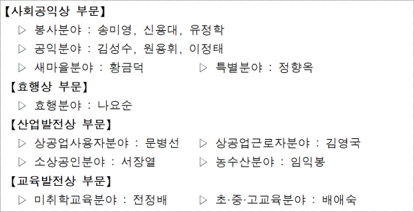 인천 발전의 주역들! 제47회 시민상 수상자 15명 선정 - -사회공익·효행·산업발전·교육발전 4개 부문 수상-