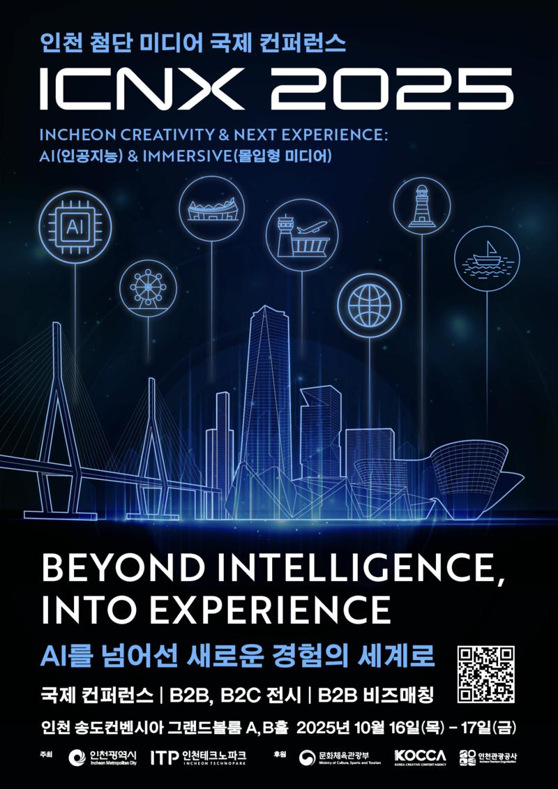 인천광역시(시장 유정복)는 오는 10월 16일(목)부터 17일(금)까지 송도컨벤시아 그랜드볼룸 A·B홀에서‘ICNX 2025(인천 첨단 미디어 국제 컨퍼런스)’를 개최한다고 밝혔다.