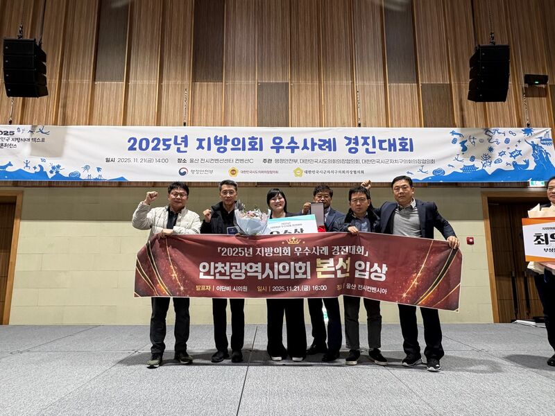 인천광역시의회(의장 정해권)가 최근 울산시 전시컨벤션센터에서 열린 행정안전부 주관 ‘2025년 지방의회 우수사례 경진대회에서 우수상을 수상했다