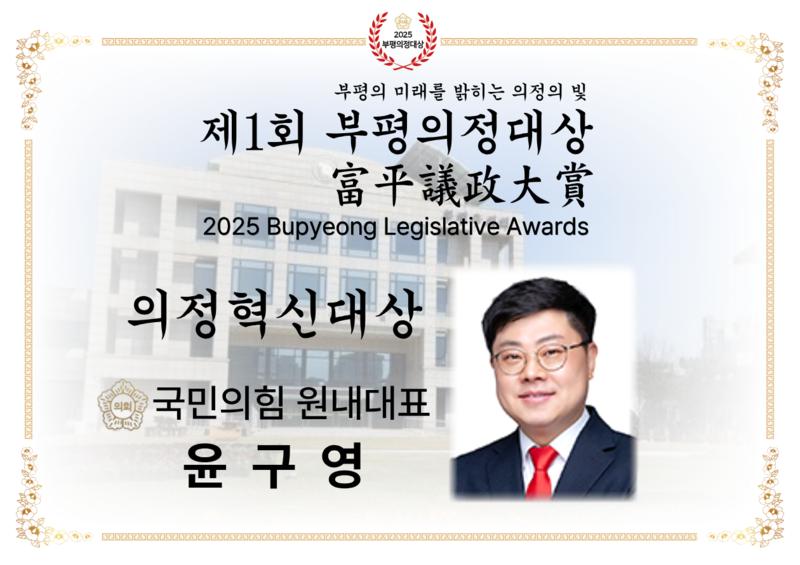 올해 의정혁신대상은 윤구영 부평구의회 국민의힘 원내대표(삼산2동·부개2·3동)가 받는다.