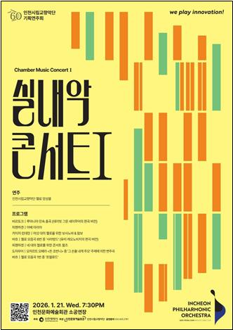 1966년 창단된 인천시립교향악단은 풀 오케스트라 연주뿐 아니라 현악 체임버 오케스트라, 목관·금관 앙상블 등 다양한 편성을 통해 폭넓은 음악 활동을 이어오고 있다. 2026년 역시 총 세 차례의 실내악 콘서트를 마련해, 완성도 높은 연주로 체임버 음악의 매력을 꾸준히 소개할 계획이다.