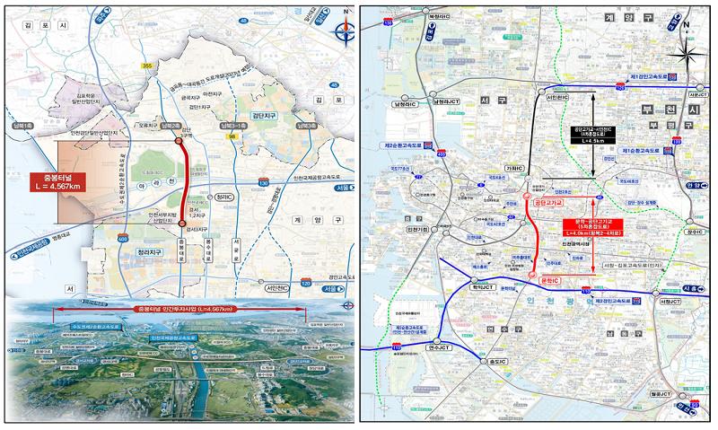 이번 국토교통부 계획에는 인천시가 지속적으로 건의해 온 ▲중봉터널 민간투자사업과 ▲문학IC~공단고가교 도로 건설사업이 포함되었으며, 총사업비 8,724억 원이 투입된다.