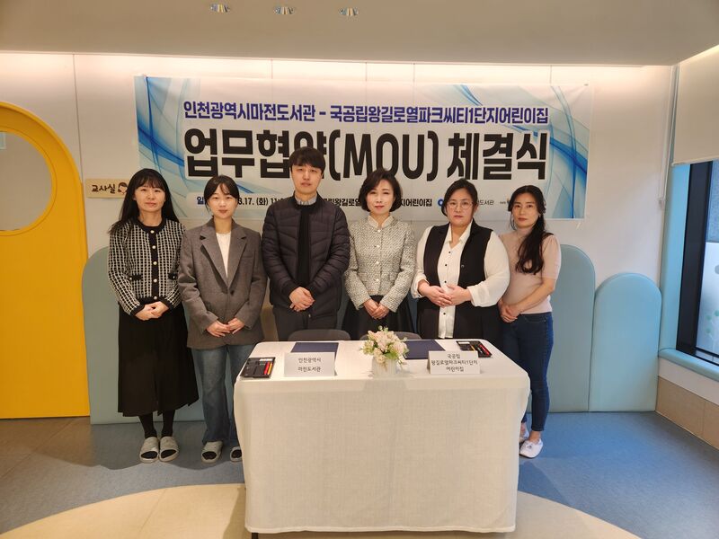 인천도서관 분관 마전도서관은 3월 17일 지역 내 국공립왕길로열파크씨티1단지어린이집과 업무협약을 체결했다