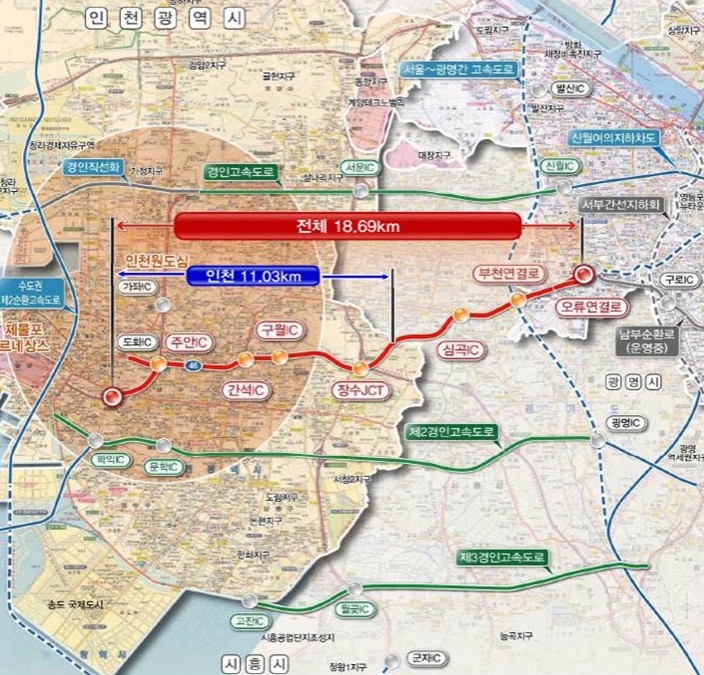 제4경인고속화도로는 제1경인고속도로와 제2경인고속도로의 교통 혼잡을 완화하고, 신규 동서축 간선도로망을 구축하는 핵심 사업이다. 인천 미추홀구 용현동(인천대로)에서 장수IC와 부천을 거쳐 서울 구로구 오류동(오류IC)까지 연결되는 총연장 18.69㎞, 왕복 4~6차로의 소형차 전용도로로 건설될 예정이다.