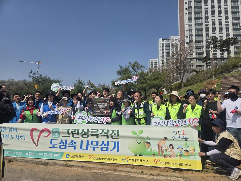 인천광역시(시장 유정복)와 인천광역시자원봉사센터는 4월 15일 서구 경서동 일대에서 자원봉사자들이 참여한 가운데‘2026 도심 속 나무심기’활동을 추진했다고 밝혔다.