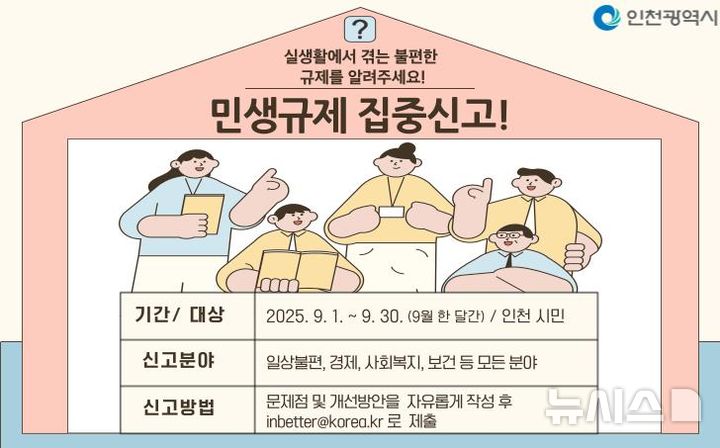 “생활 속 불편 신고하세요” 인천시, 민생규제 개선 나선다 - -9월 한 달간 집중신고기간 운영-