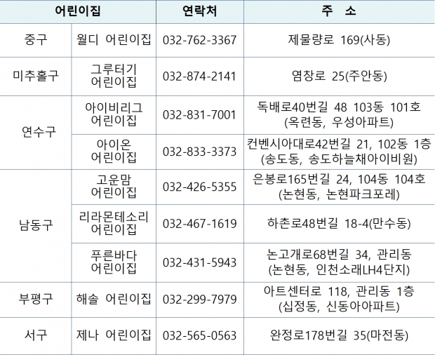 시현정 시 여성가족국장은 “아이 키우기 좋은 도시, 일하기 좋은 도시 인천을 만들기 위해 행정력을 집중하고 있다”라며, “인천시는 앞으로도 돌봄 사각지대에 놓인 가정이 소외되지 않도록 돌봄과 보육을 아우르는 통합 육아 지원체계를 완성해 나가겠다”라고 말했다.