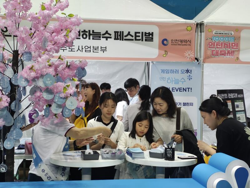 이번 행사는 시민들에게 수돗물 음용문화를 친숙하게 알리고, 인천하늘수에 대한 긍정적인 인식을 확산하기 위해 마련됐다. 행사장에서는 ‘인천 하늘수 퀴즈’, ‘하늘수 물병 세우기’ 등 체험행사와 포토존 등이 운영돼 시민들의 큰 호응을 얻었다.