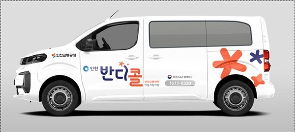 새롭게 선정된 명칭“반디콜”은 반딧불이와 콜택시의 합성어로 어둠을 밝히는 반딧불이처럼 교통약자에게 밝은 빛이 되어 불편함이 없도록 지원하겠다는 의미를 담고 있다. 디자인은 인천의 바다색과 정서진의 석양색을 활용하여 따뜻하고 친근한 이미지를 강조했다.