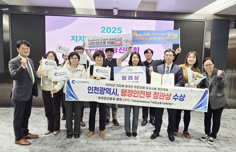 인천광역시(시장 유정복)는 지난 12월 1일 행정안전부에서 주최한‘2025년 지자체 외국인주민 지원 우수사례 경진대회’에서 ‘외국인근로자 정착 GPS Governance,Policy&Safety!’프로그램으로 장려상을 수상했다고 밝혔다.