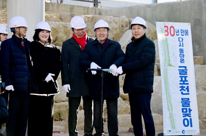 인천광역시(시장 유정복)는 12월 4일 인천 제1호 하천복원사업인 ‘굴포천 자연생태하천 복원사업’ 준공을 앞두고 하천유지용수를 처음 공급하는 물맞이 행사를 개최했다고 밝혔다.