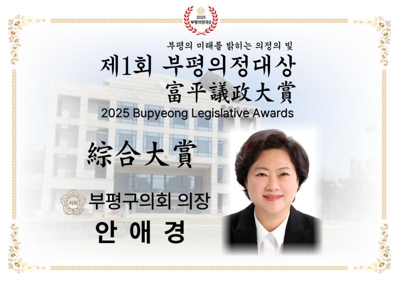 올해 종합대상 수상자는 안애경 부평구의회 의장(더불어민주당·부평1·4동 가)이다.