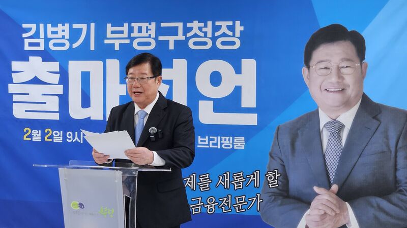 김병기 전 인천시의원은 2일 부평구청 브리핑룸에서 기자회견을 열고, 금융·재정과 의정활동 경험을 앞세워 부평 경제 구조를 근본적으로 바꾸겠다며 부평구청장 선거 출마를 공식화했다.
