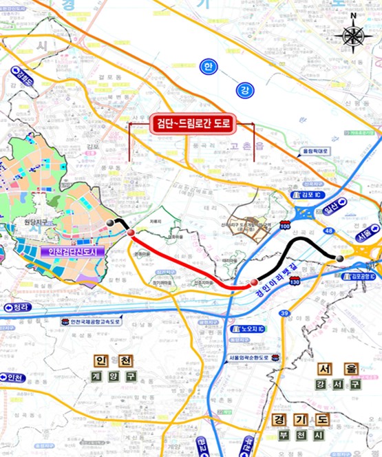 인천광역시(시장 유정복)와 한국토지주택공사(LH)는 검단지역 광역교통개선을 위해 추진해 온 검단∼드림로간 연결도로를 4월8일 오후 2시에 개통한다고 밝혔다.