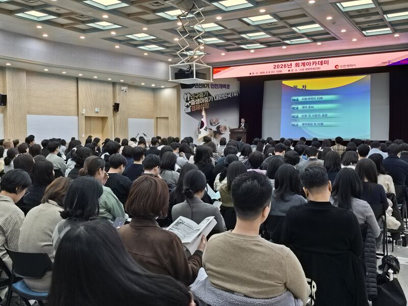 인천광역시(시장 유정복)는 4월 8일 인천시청 대회의실에서 본청과 직속기관·사업소, 군·구, 공사·공단 등 계약업무를 담당하는 실무자 200여 명을 대상으로 ‘2026년 회계아카데미'를 개최했다.
