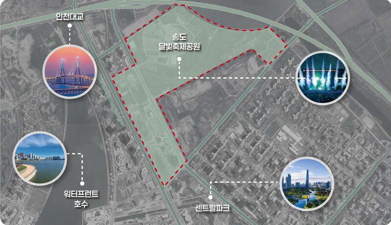 송도 달빛축제공원 일원은 인천대교, 워터프런트 호수, 센트럴파크 경관이 있고, 인천국제공항과 가까우며, 인천지하철 1호선이 인접하는 등 훌륭한 입지여건을 갖추고 있다고 판단된다.