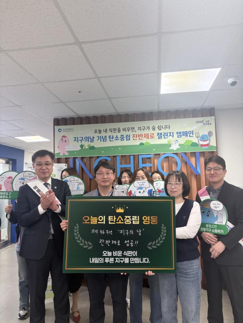 인천광역시(시장 유정복)가 4월 22일‘지구의 날’을 맞아 식판 위 음식물을 남기지 않는 작은 실천으로‘2045 탄소중립’ 실현에 속도를 낸다.